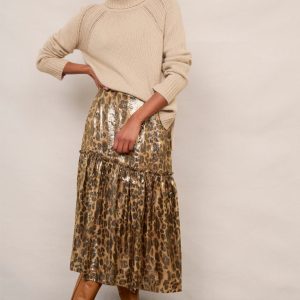 Saskia Silk Blend Lame Skirt – Leopard