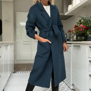 Diane Double Faced Belted Coat – Dark Petrol