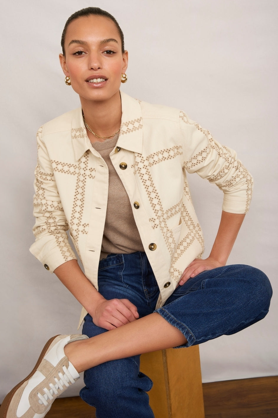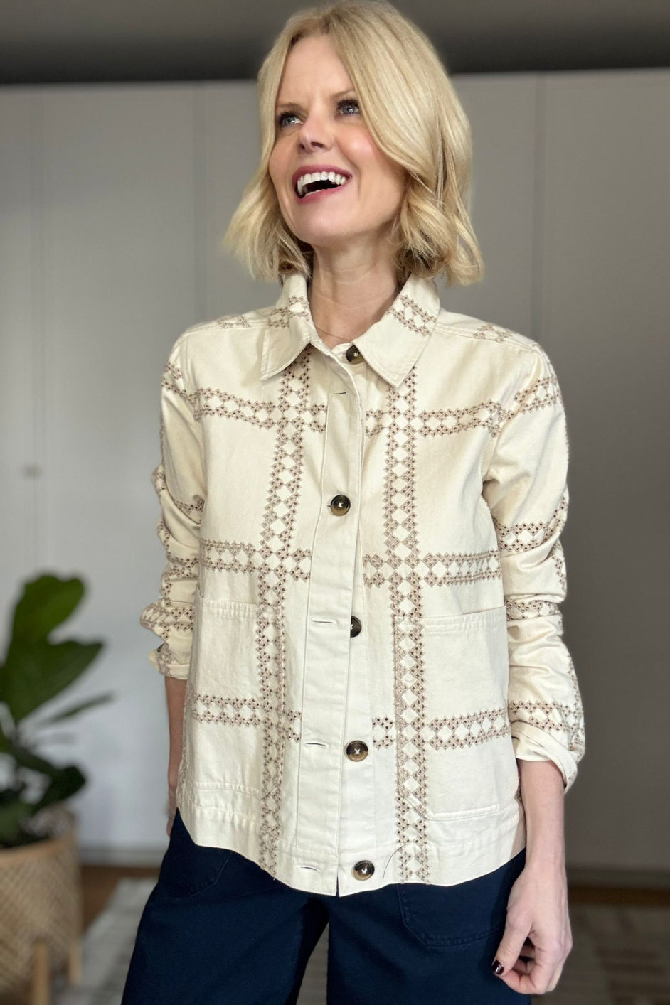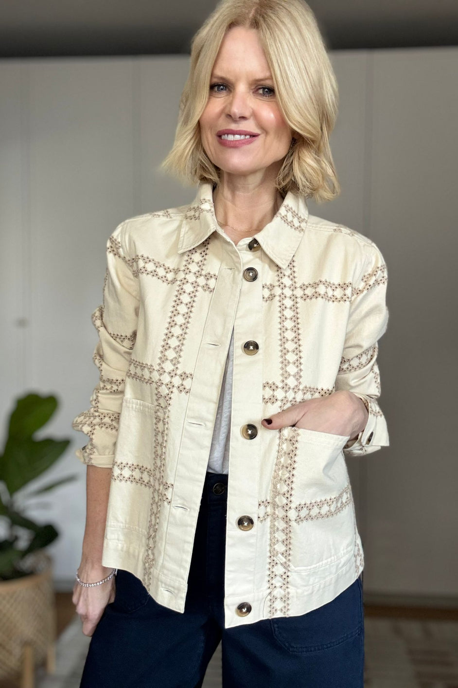 - Our Aveline Denim Jacket is back in an Ecru Embroidery.