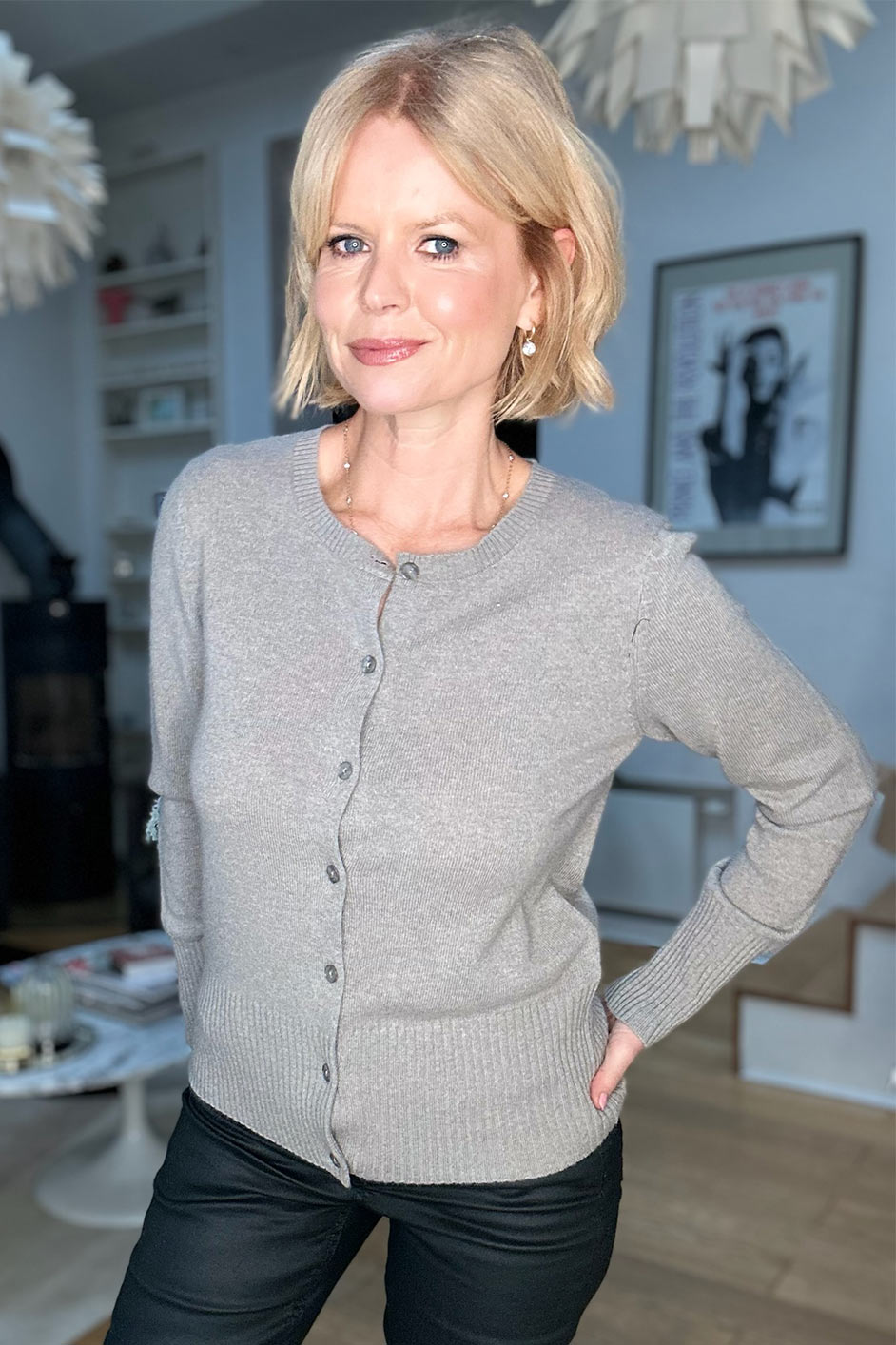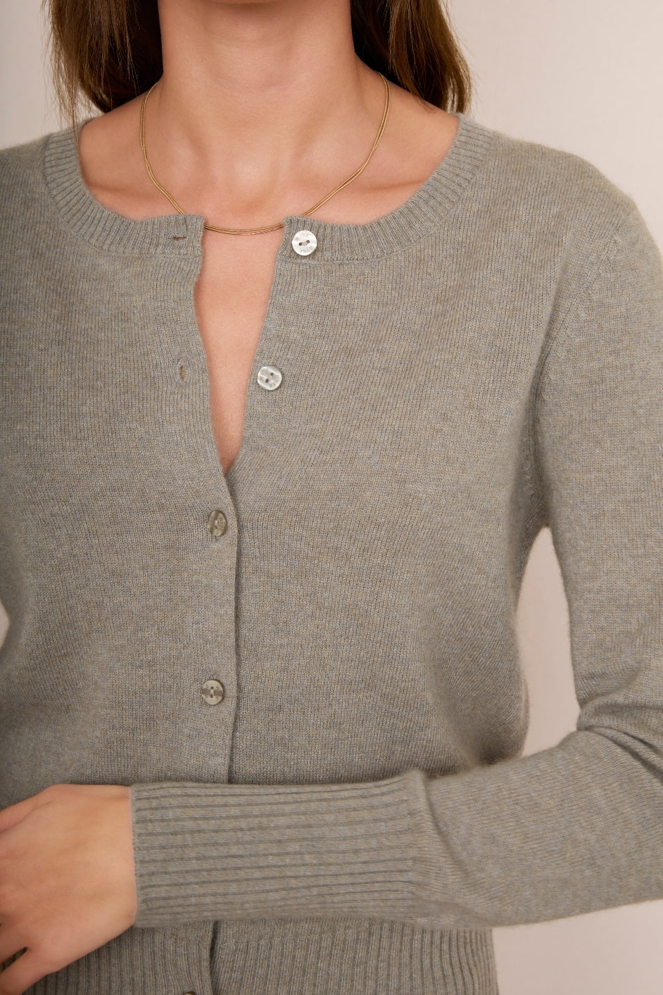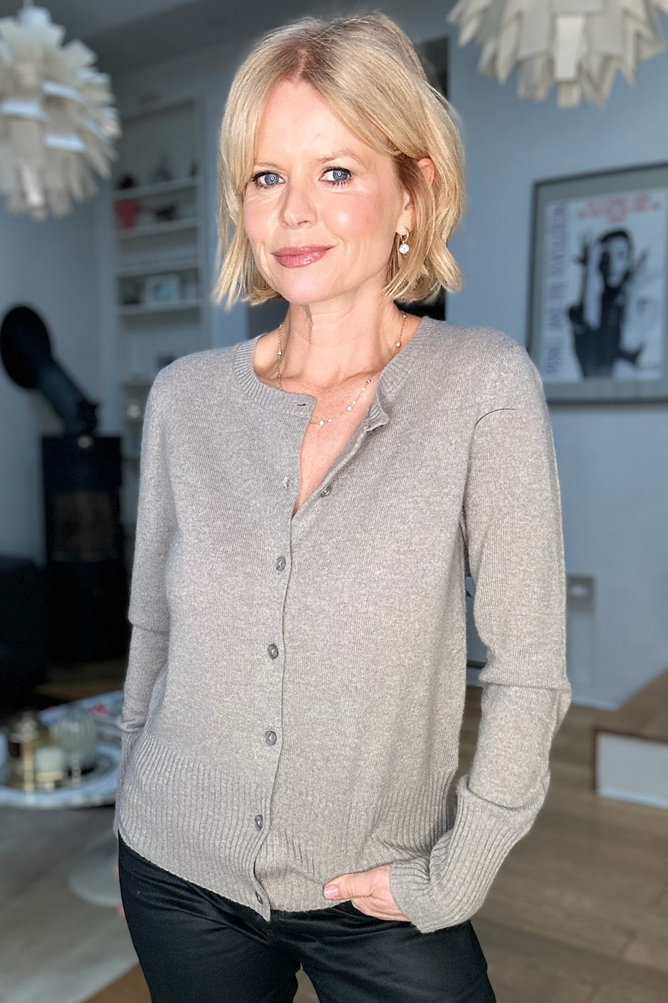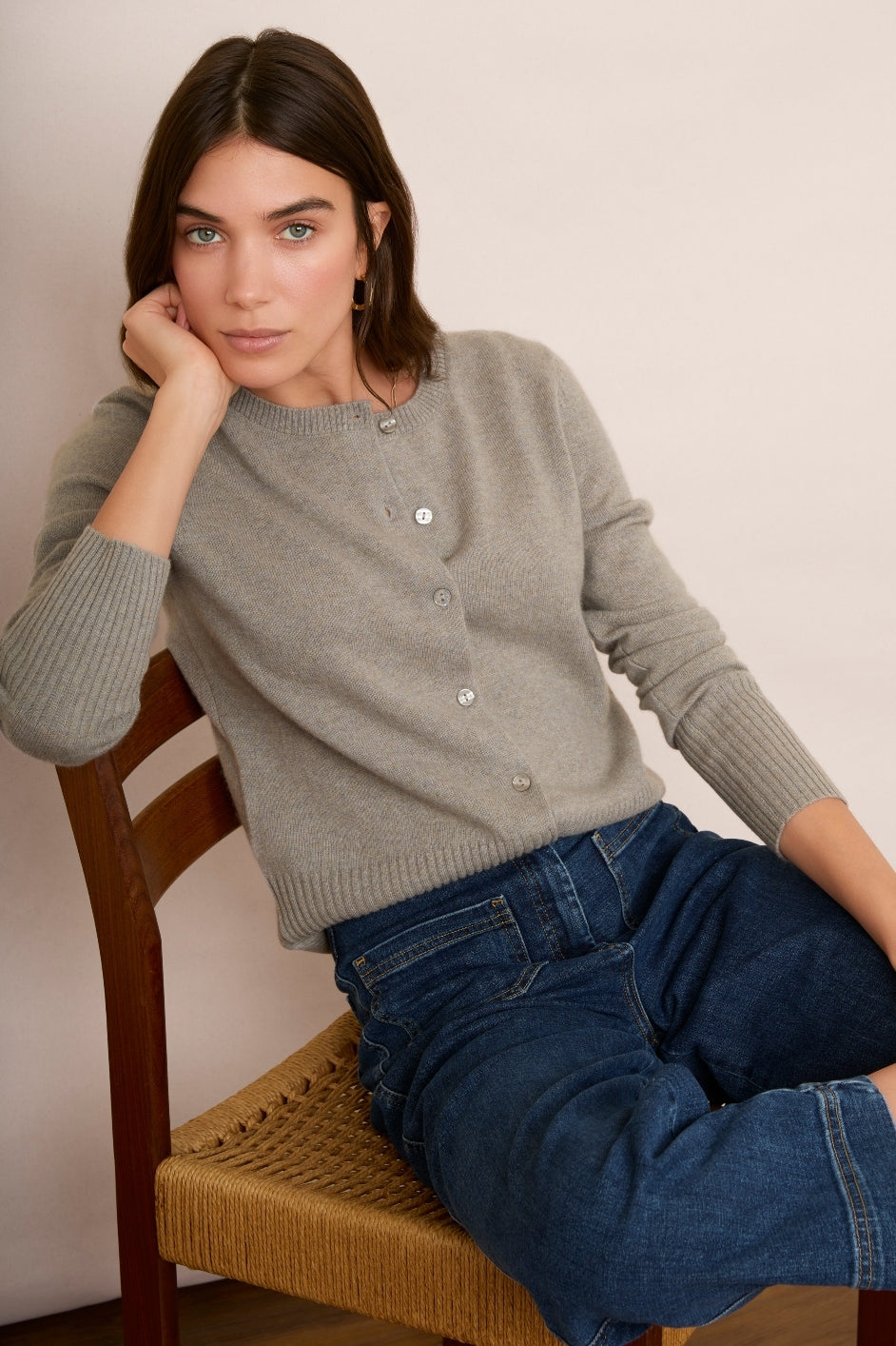 Our new 100% Cashmere Cardigan in a chic mushroom!