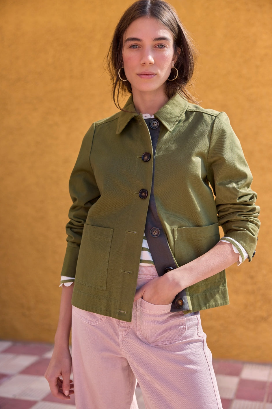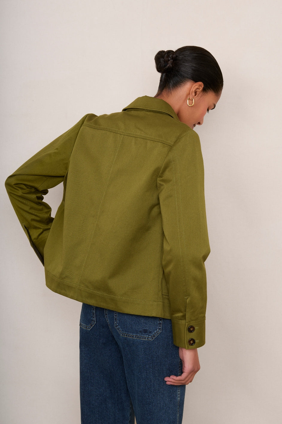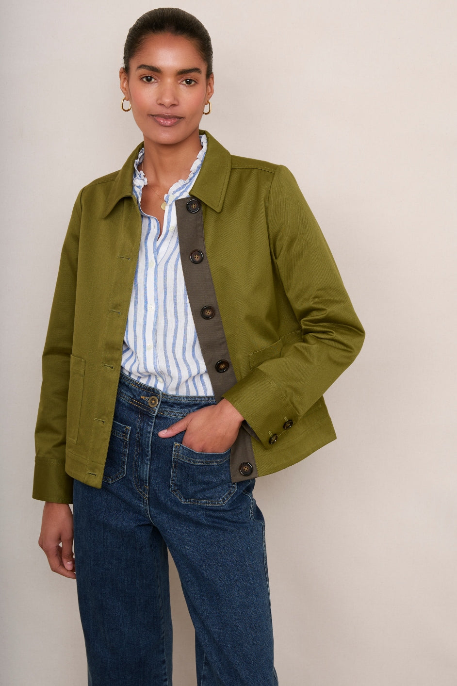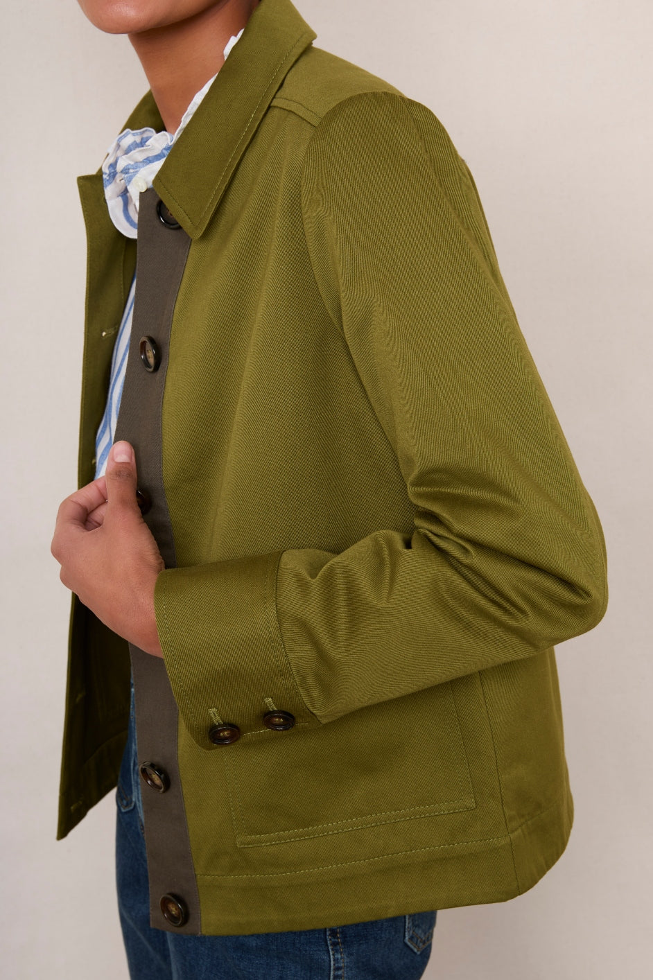 - A perfect Spring jacket in a gorgeous olive green colour.