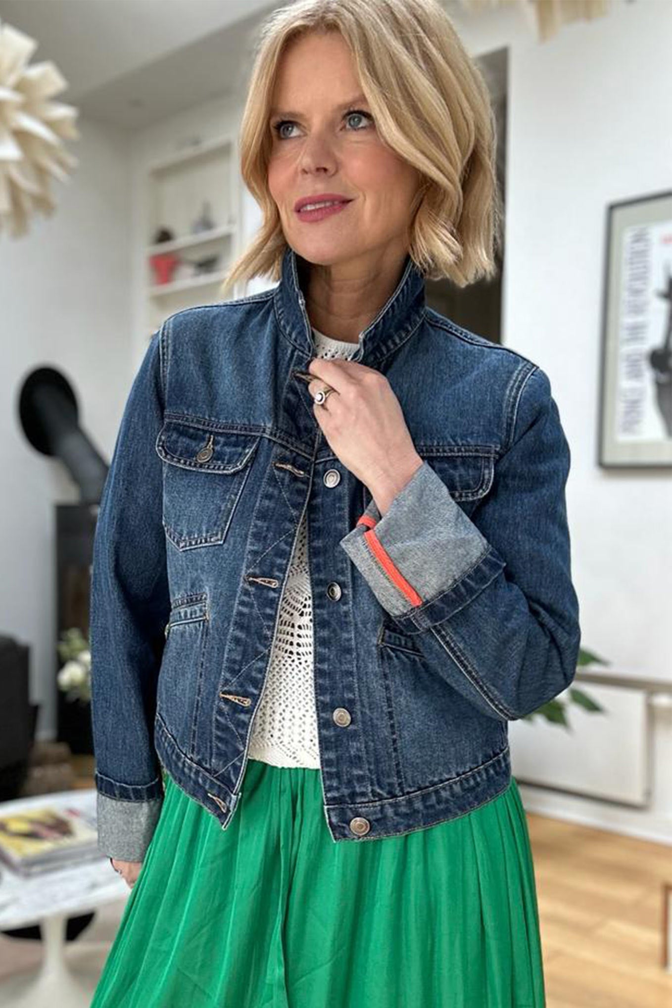 A spring denim jacket calls for a few extra details, which is why we designed Claire to be slightly cropped (we think a shorter length works better with sun dresses) and added a coral stripe to her cuff. A slim, but classic fit that goes with everything – a wardrobe essential you might say.