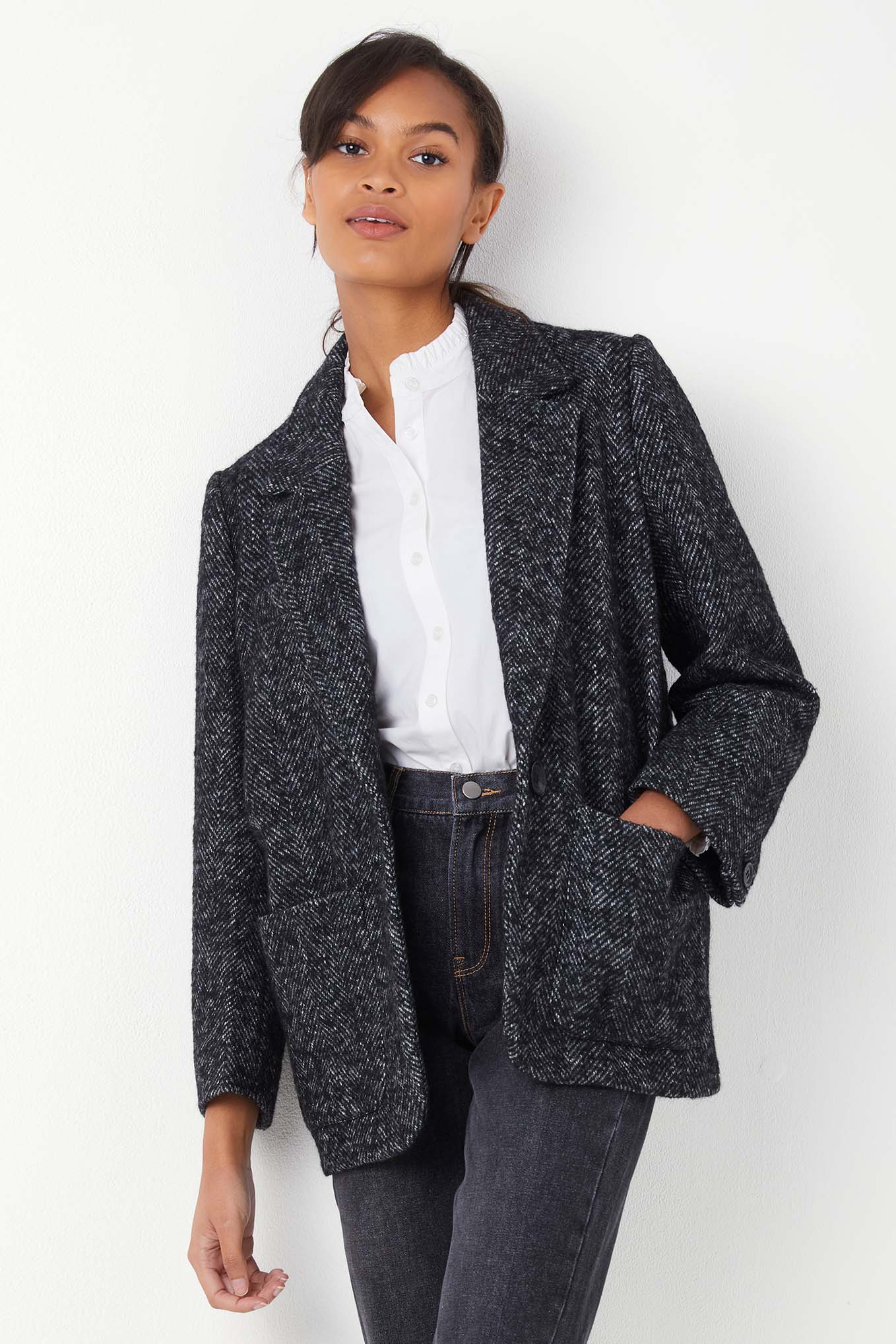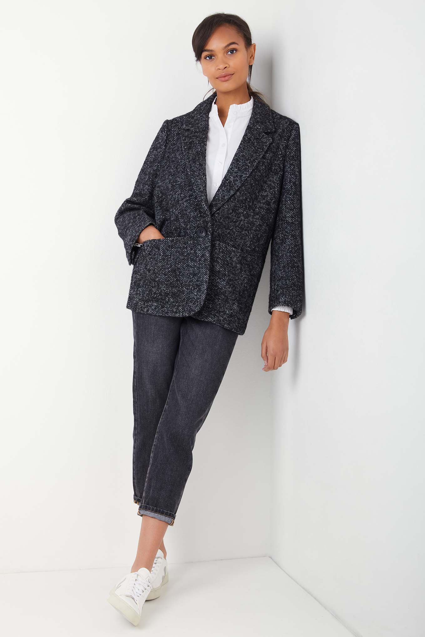 Psst. You heard it here first, but a tweed jacket is going to become your go-to for Spring – the perfect accompaniment to dresses and cool worn over knits, tees and blouses. We happen to think Deborah Brett has designed a perfect version for Wyse. A wool alpaca blend, with a herringbone weave, this has a boxy fit and bracelet length sleeves (so it feels casual but not too masculine), the one button and single breasted cut makes it extra flattering too.