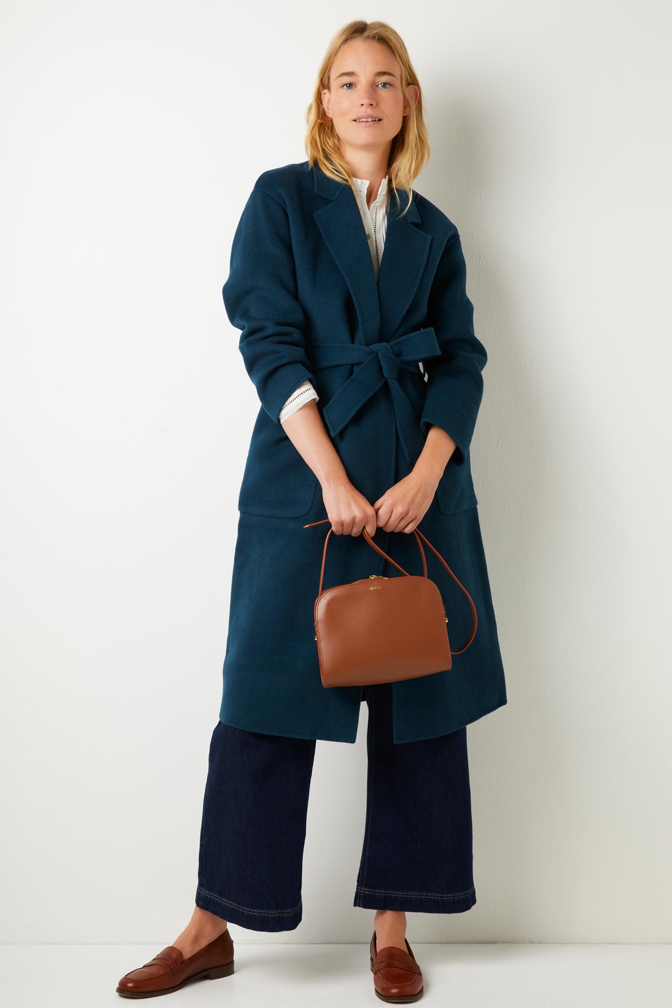 Some coats come and go and others will stay in your wardrobe forever – and we believe Diane will be with you for decades to come. A beautiful, pared-back but modern shape, in generous proportions, so she can be cinched in with her self-tie belt, or worn loose, and her sleeves can be ruched too. Cut slightly longer than midi-length and in two shades, oat and teal, this is the kind of coat you can throw over anything and feel chic. Double-faced wool for extra warmth. Available in four sizes – xsmall for 6, small for 8/10, medium for 12/14 and large for 16/18.