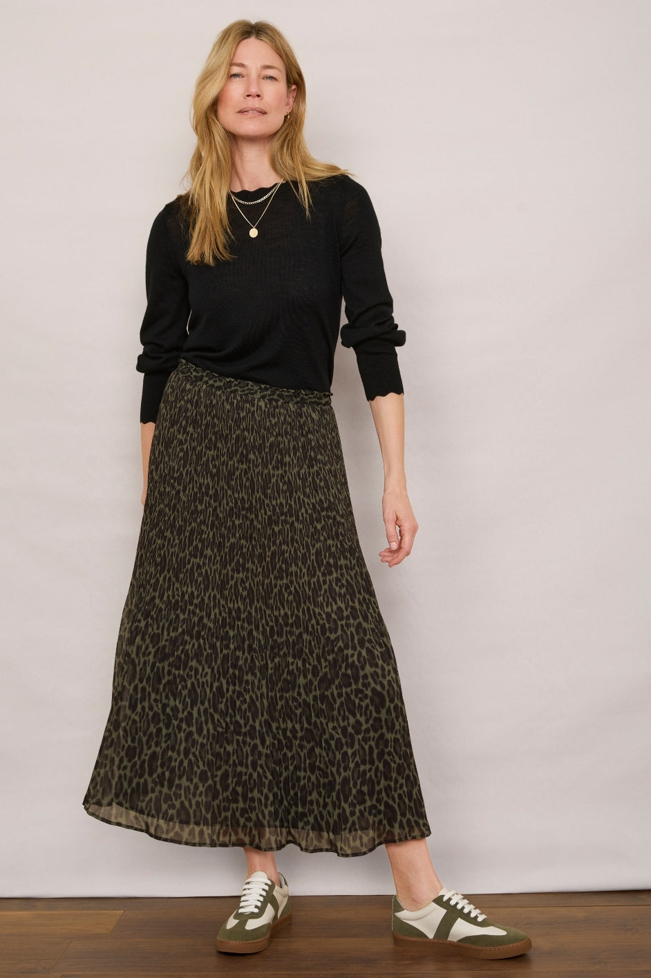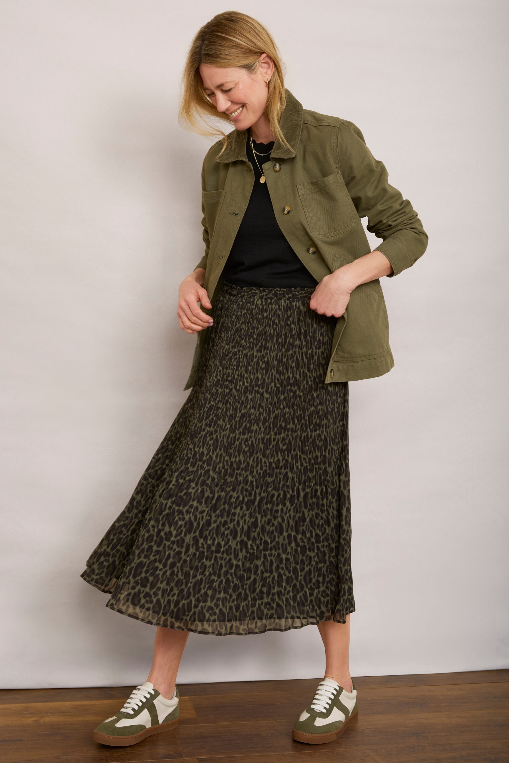 - Estelle Plisse Skirt is back in a gorgeous new khaki leopard print.