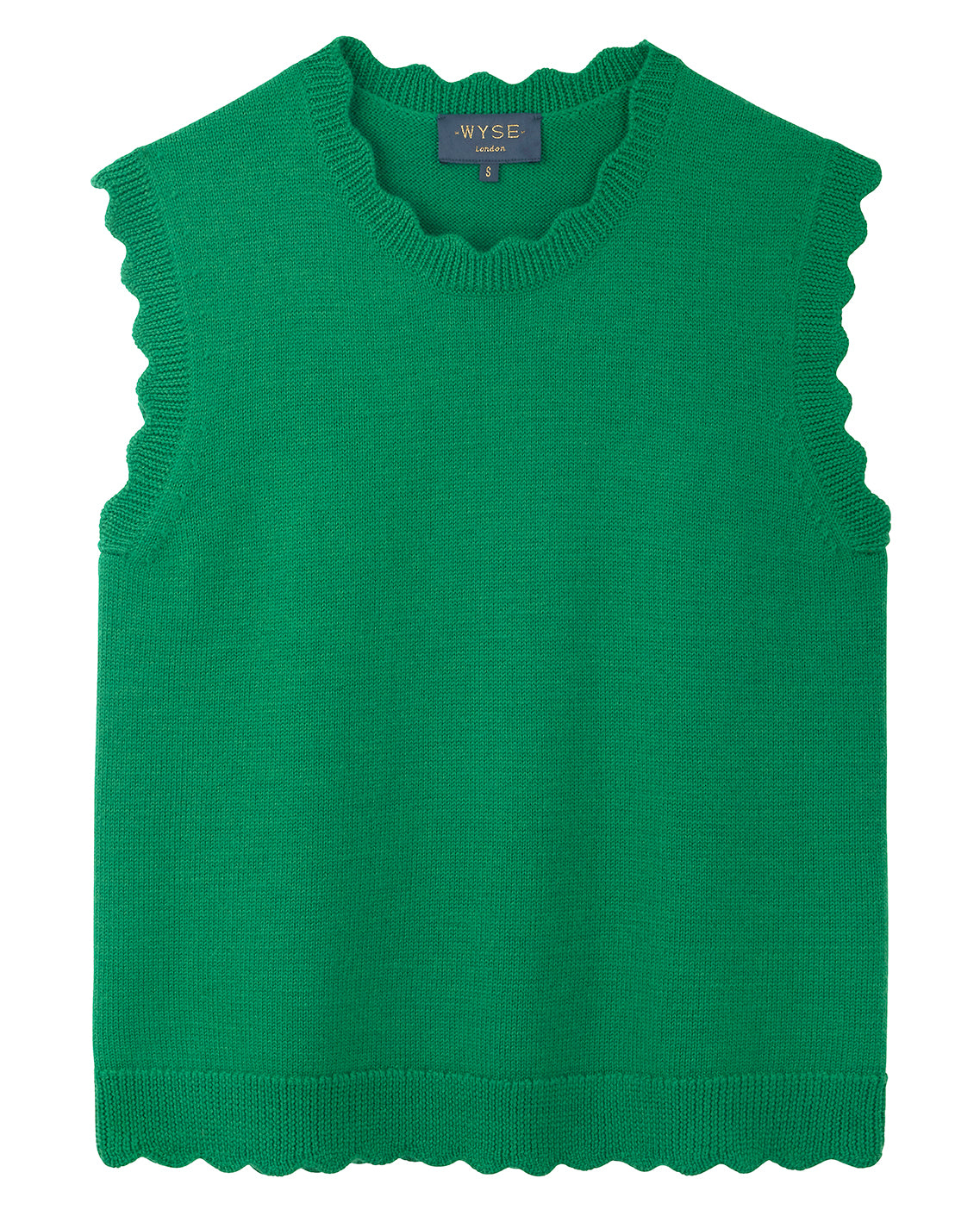 - Scallop detail at the neck, hem and arms.