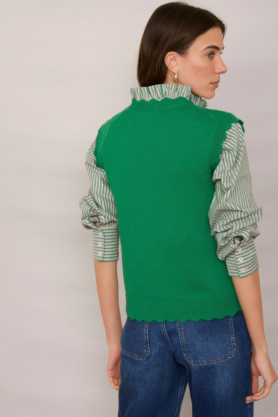 - 100% Merino Wool – chunkier weight than the Fleurine Scallop Jumper.