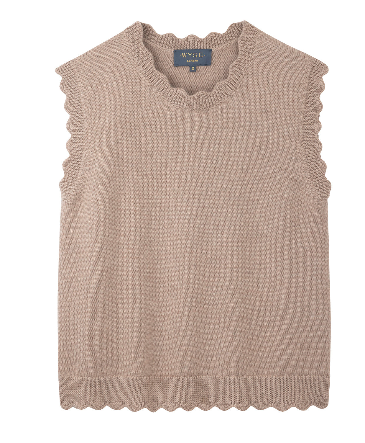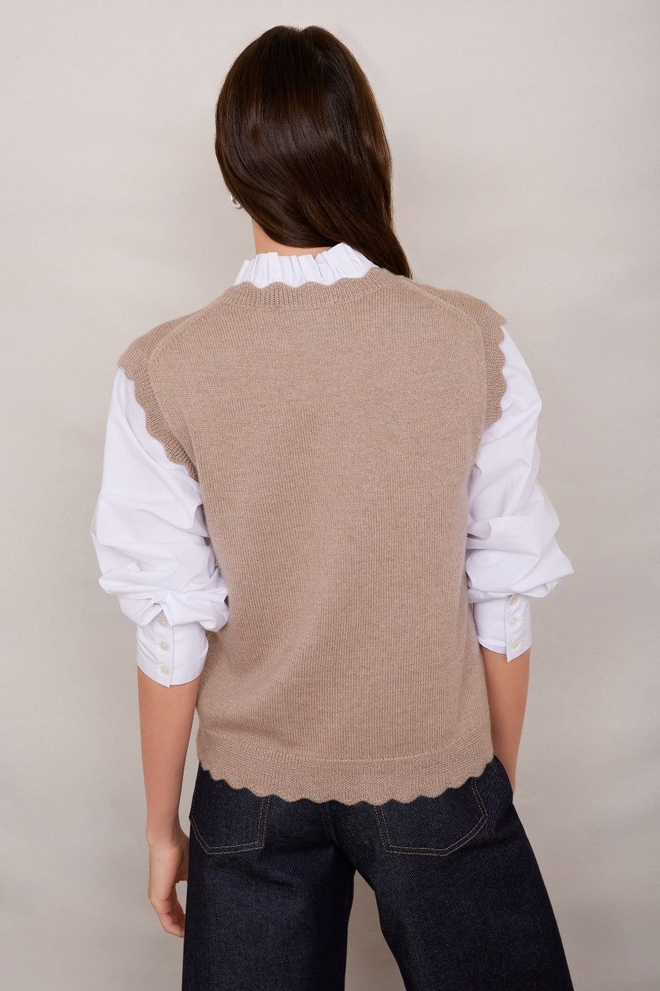 - Scallop detail at the neck, hem and arms.