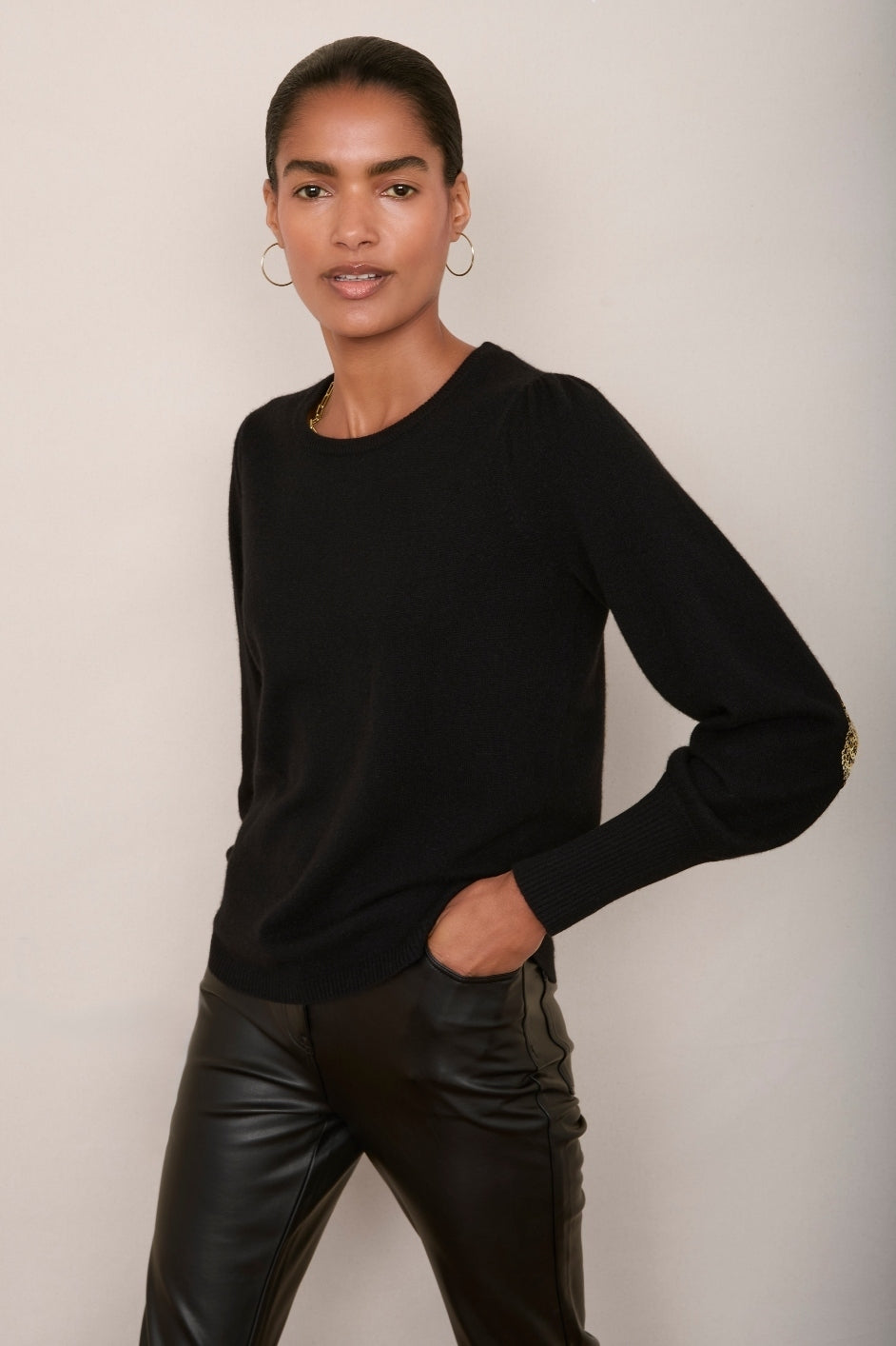 - A gorgeously soft wool and cashmere blend in an essential black colourway.