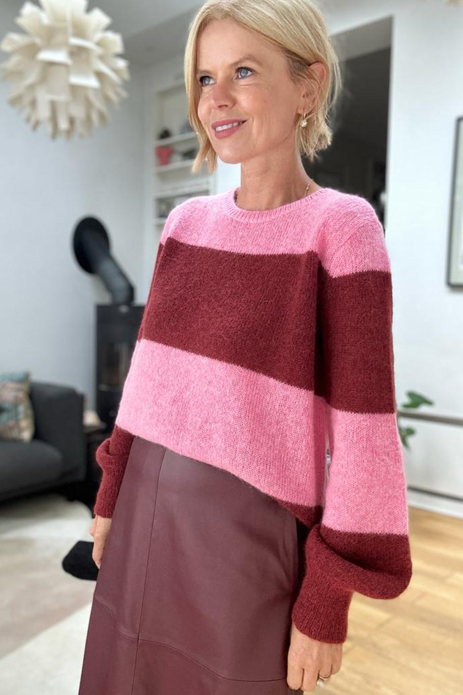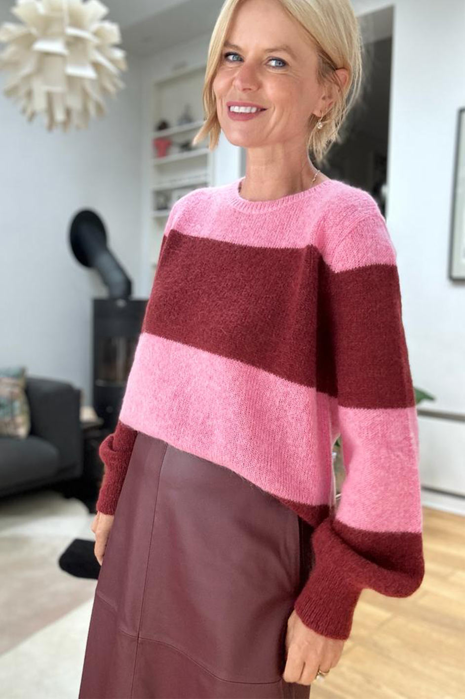 Melanie Block Stripe Jumper – Pink/Burgundy