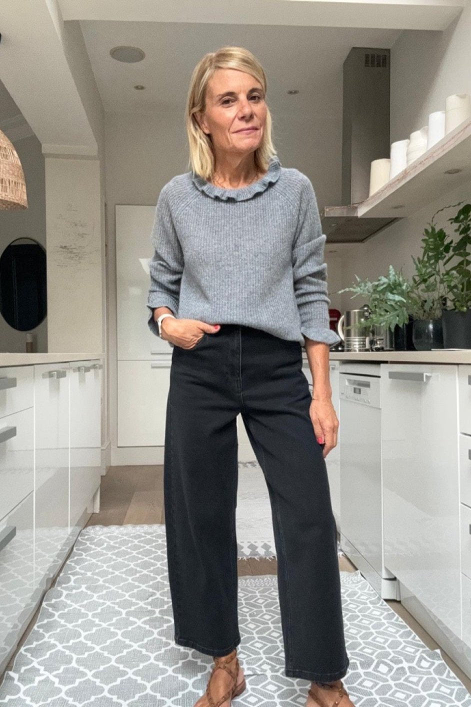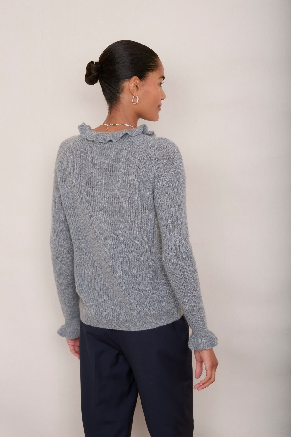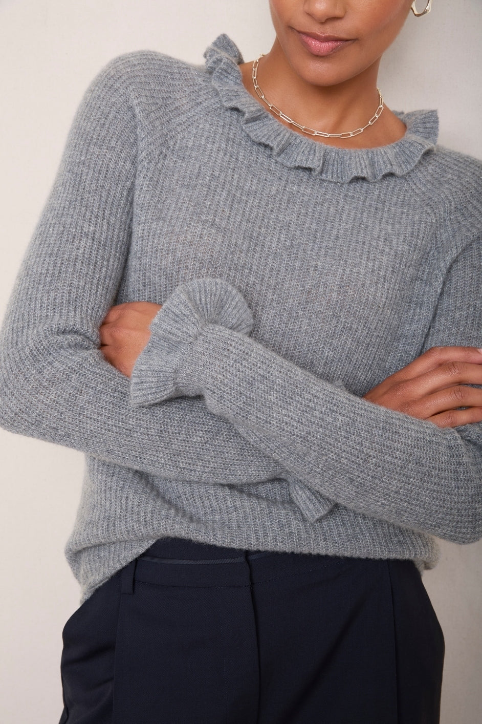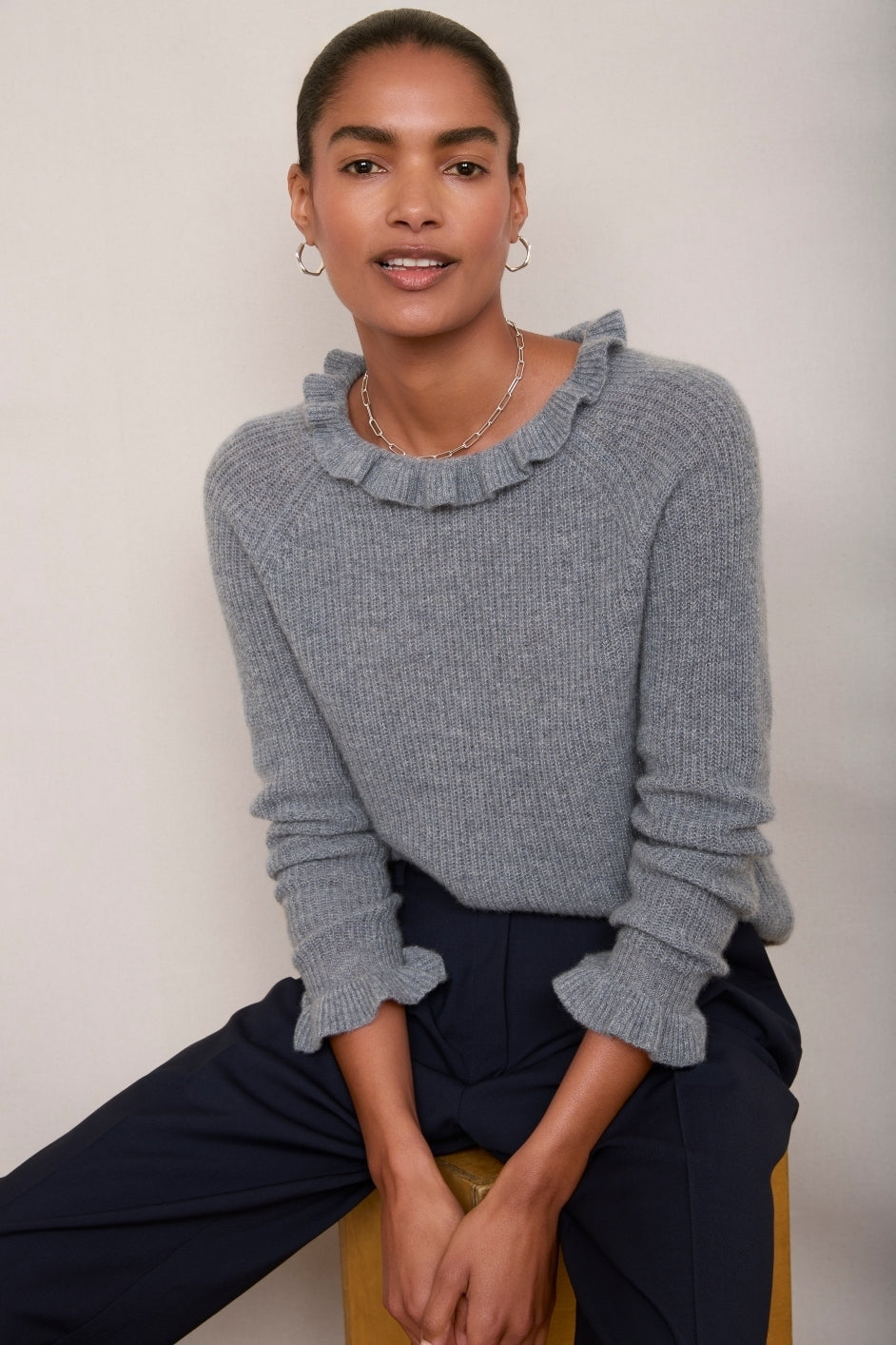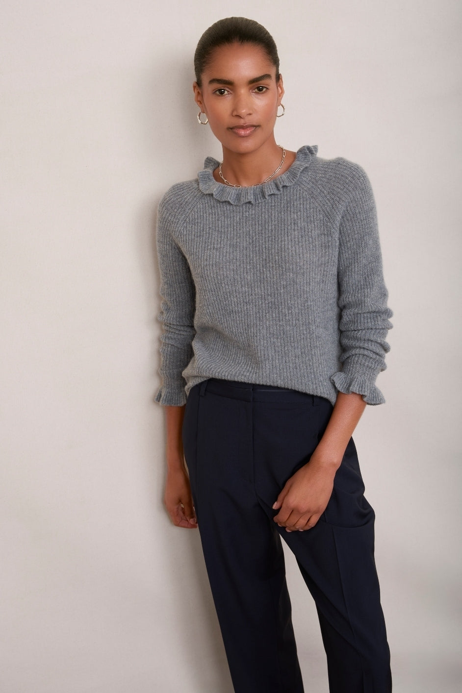 Renee Cashmere Ruffle Neck Jumper – Charcoal Sparkle