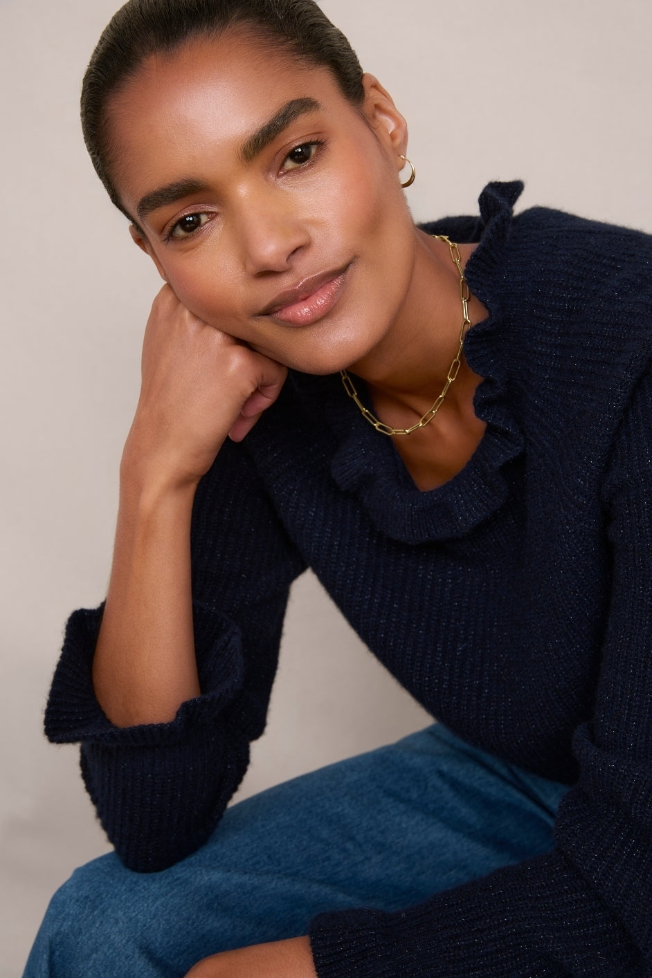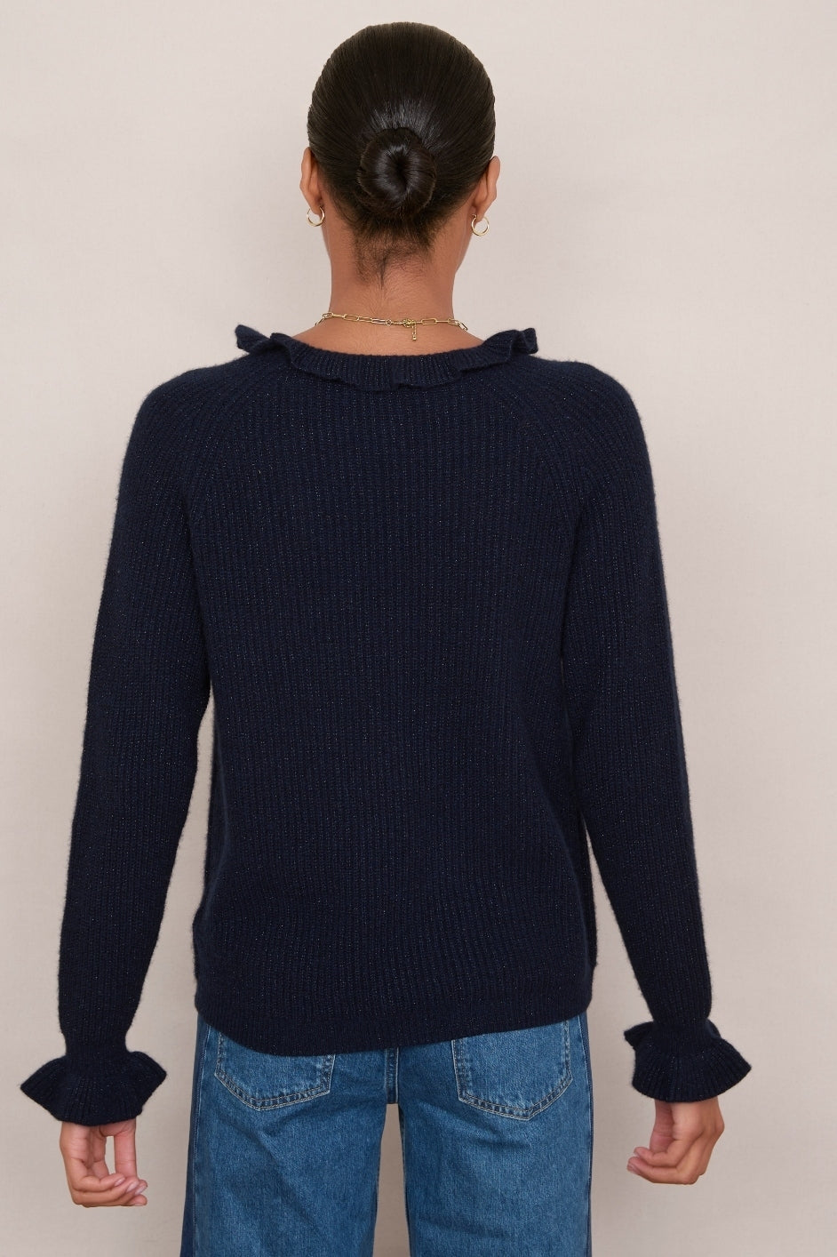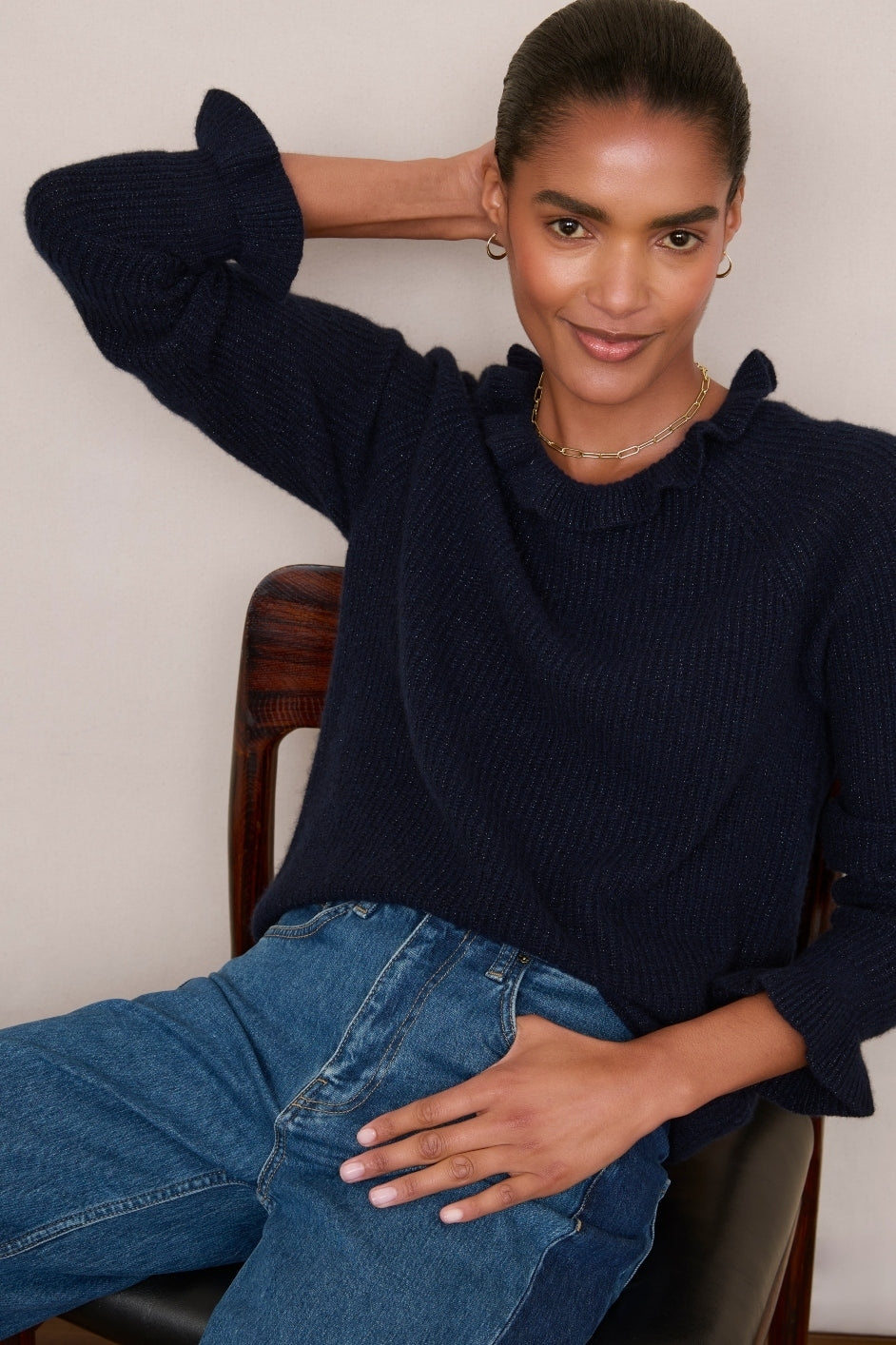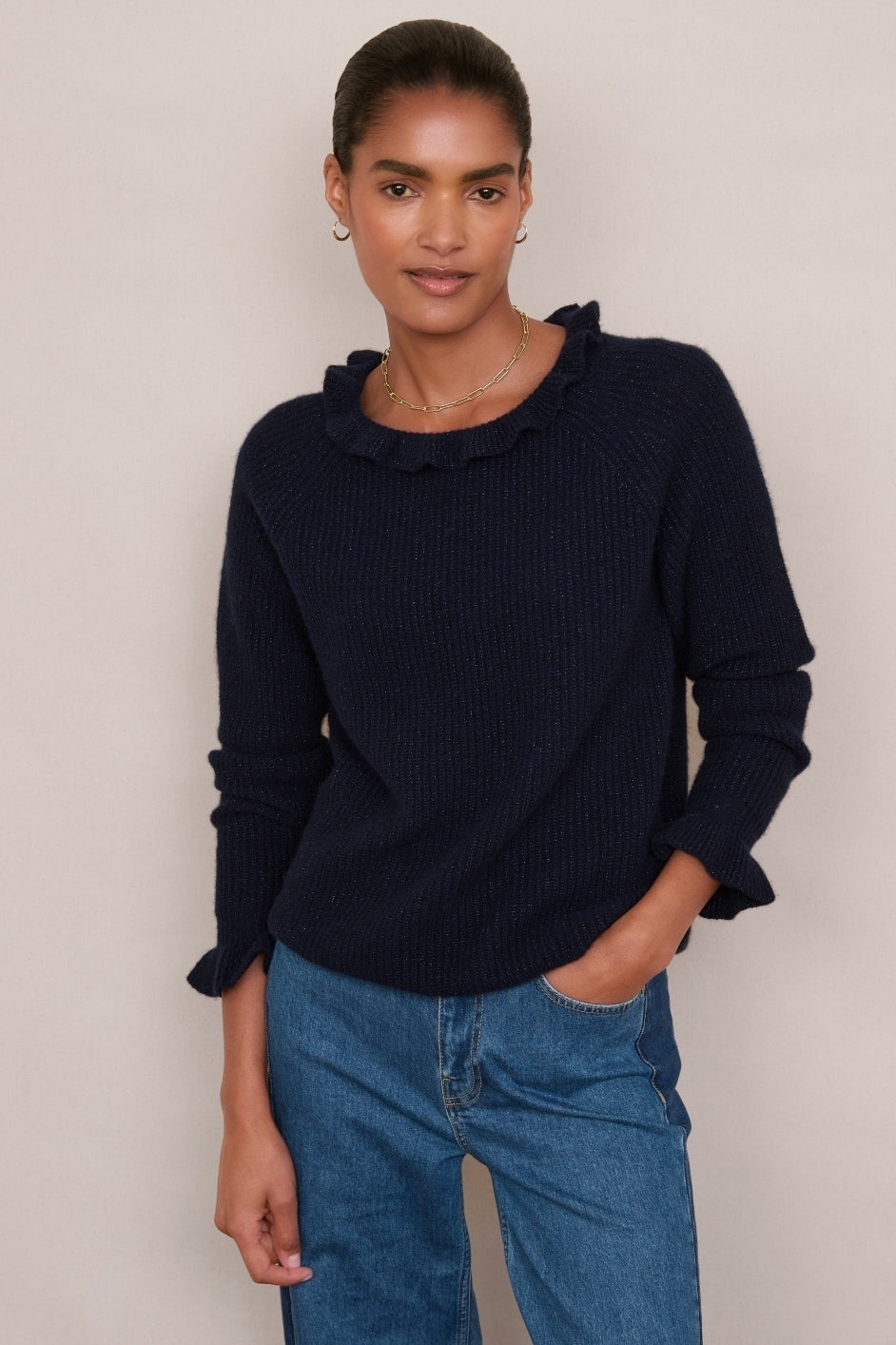 Renee Cashmere Ruffle Neck Jumper – Midnight Sparkle