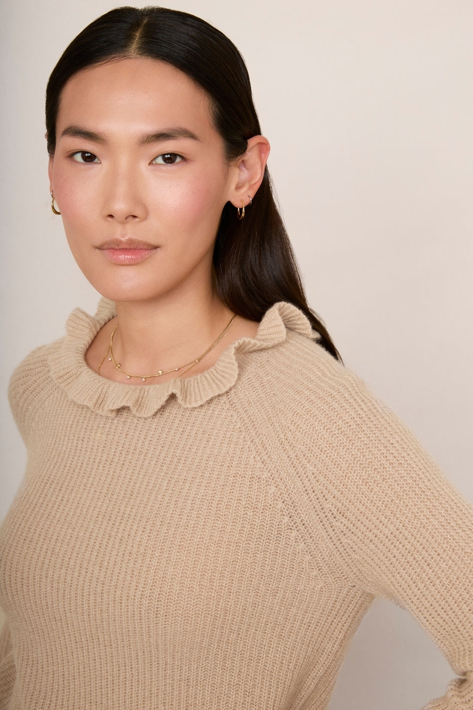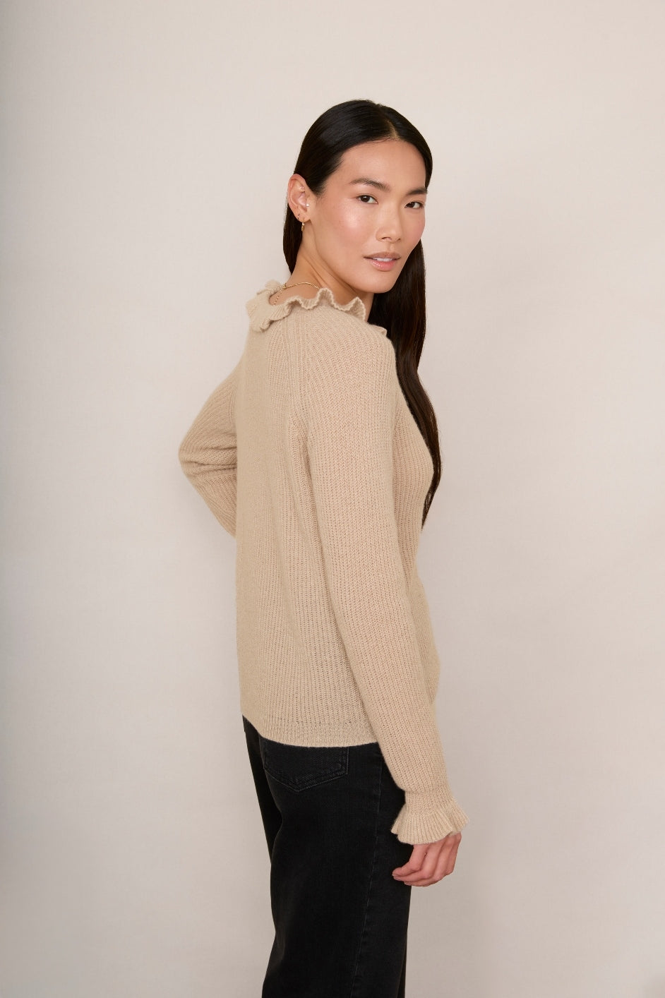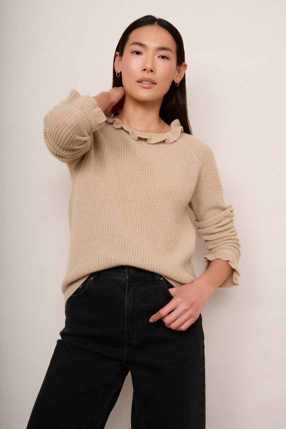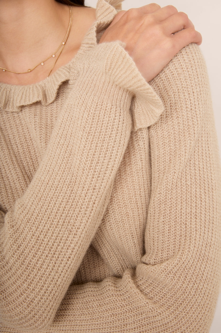 Renee Cashmere Ruffle Neck Jumper – Oat Sparkle