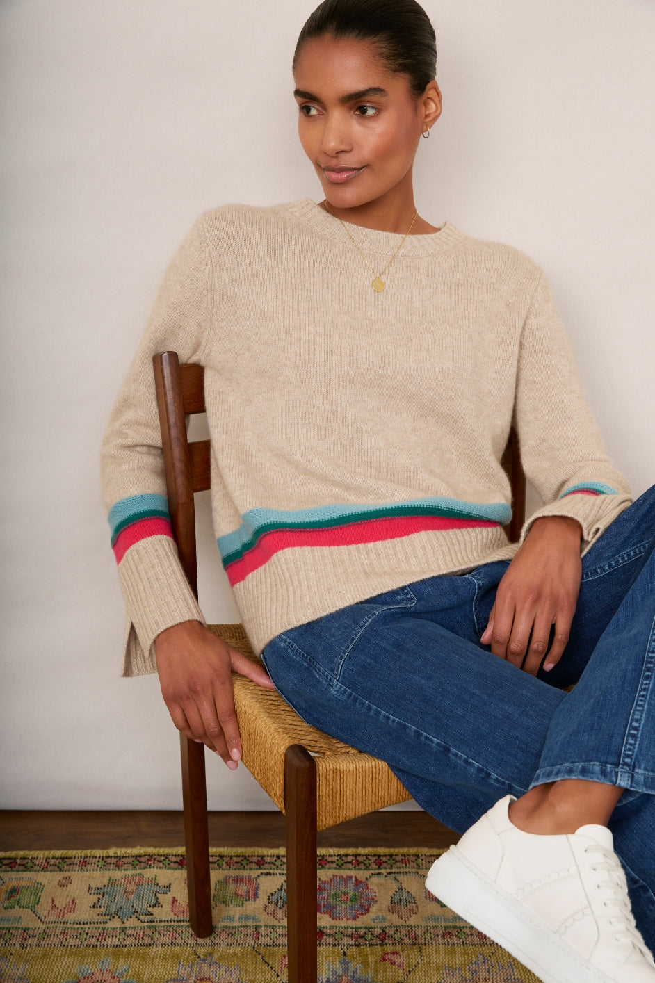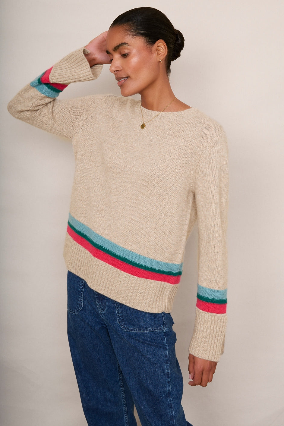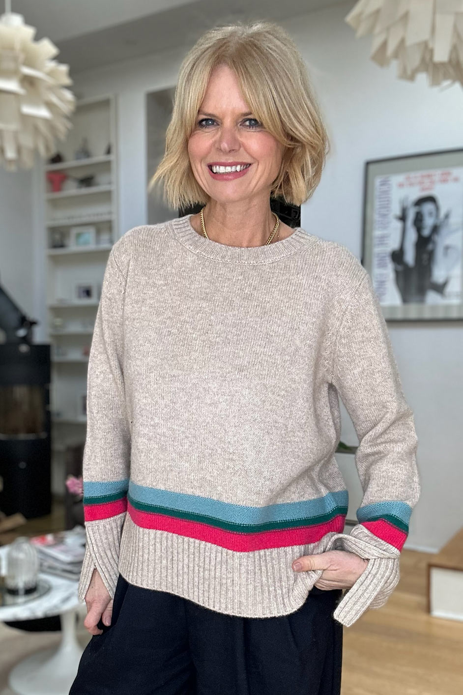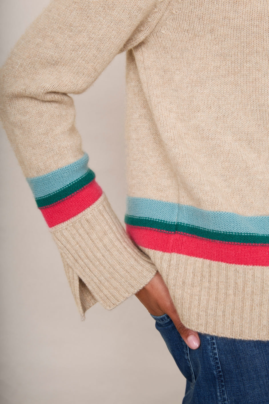 - A gorgeous colourway – taupe with Spring stripe detailing.