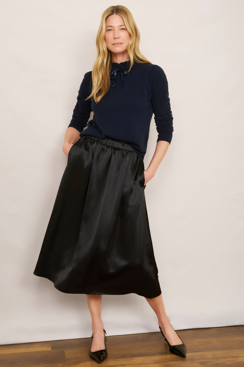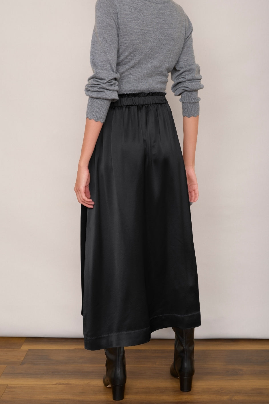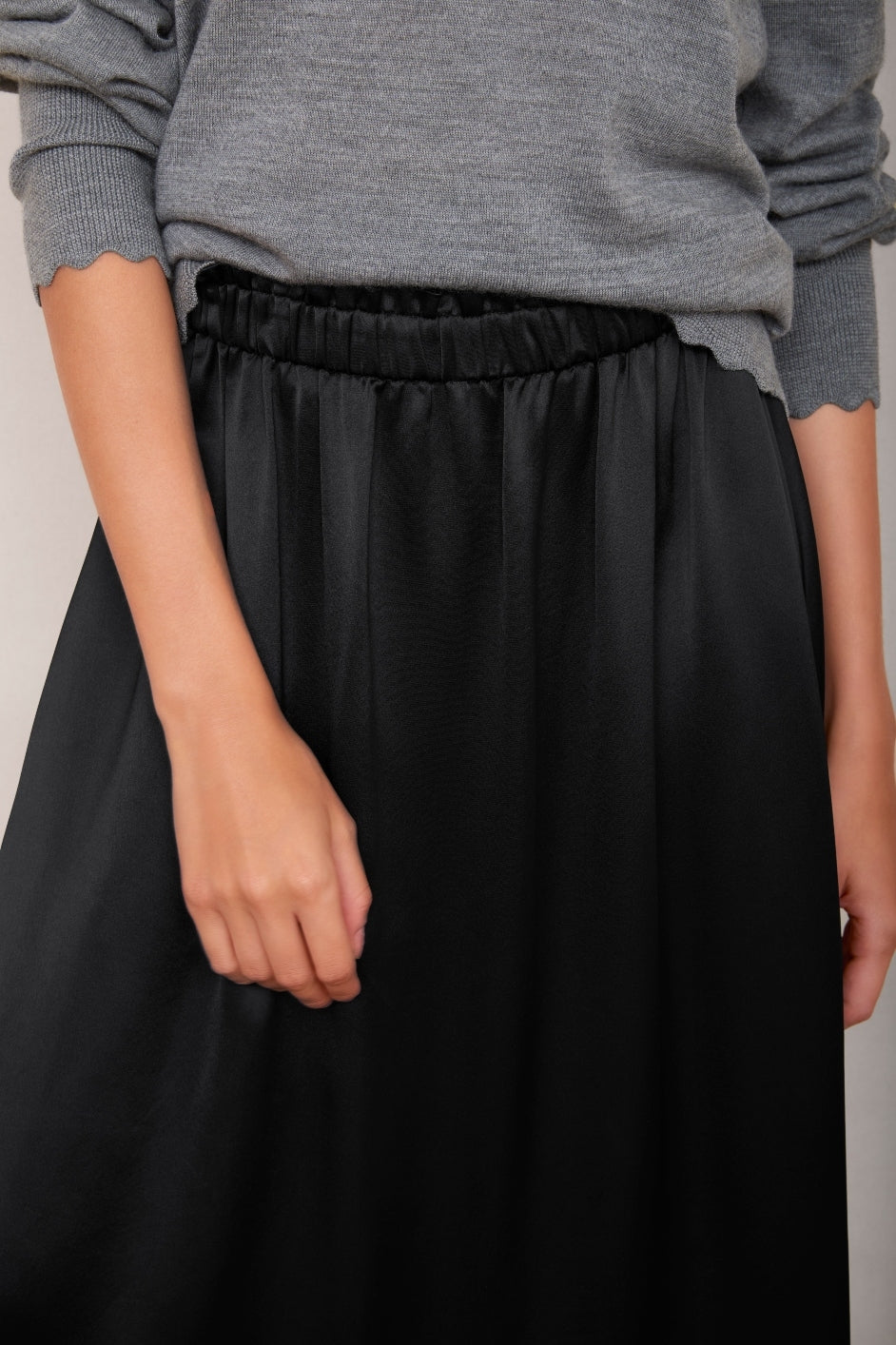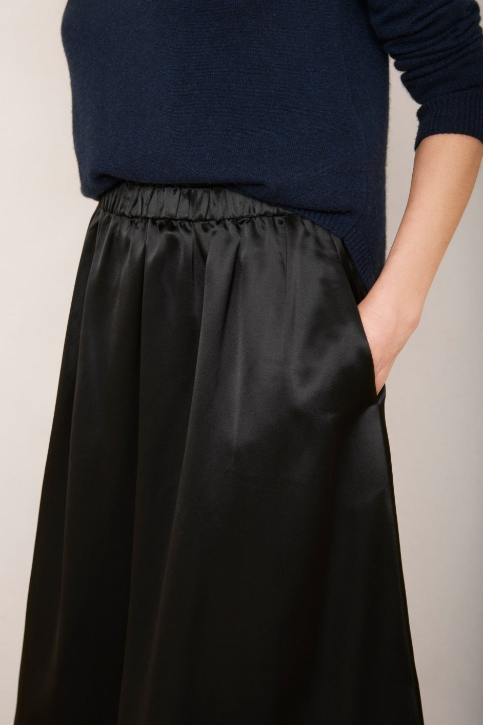 - This skirt offers smooth, flowing drape in a black colourway.