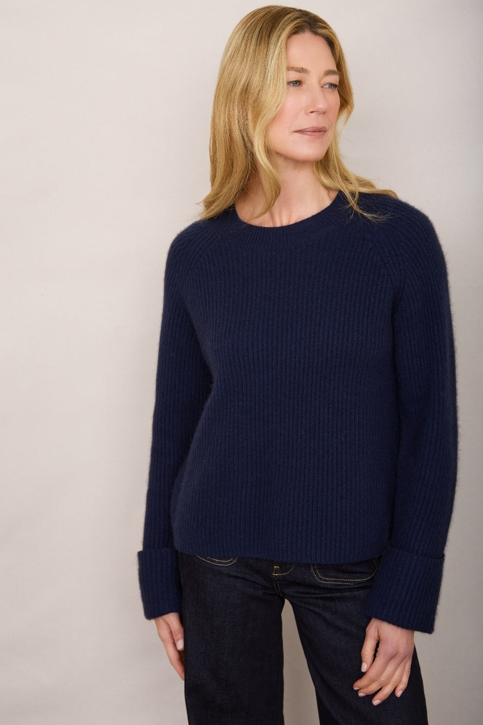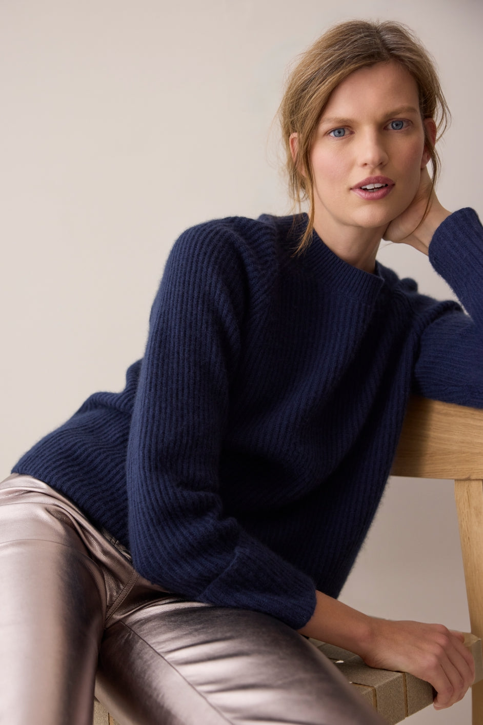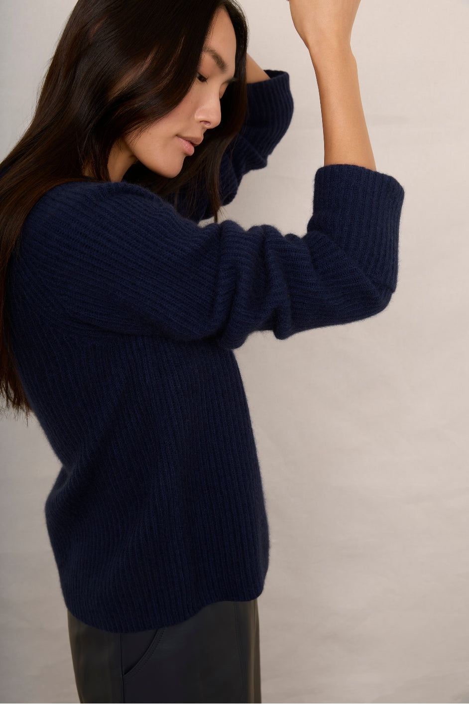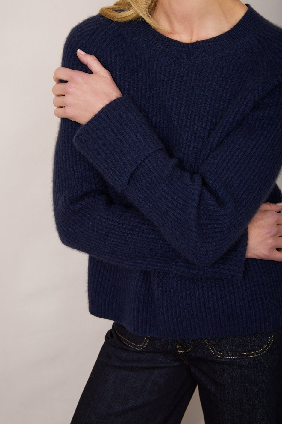 - A soft wool and cashmere blend, with a ribbed texture throughout.