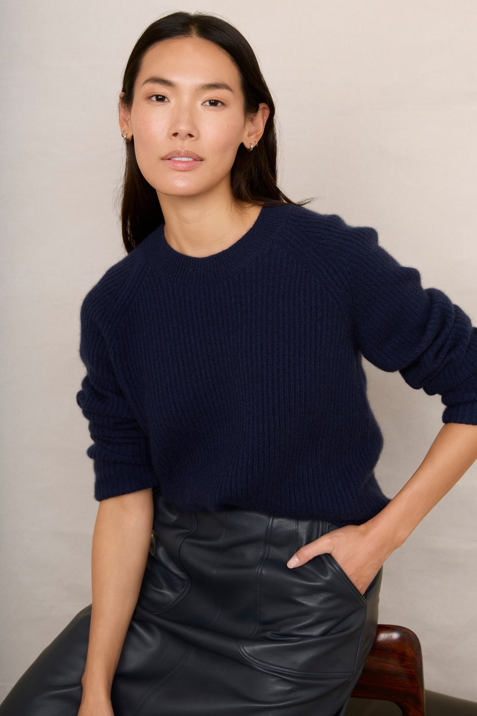 - Classic midnight colour is so easy to outfit and pair with the Josie faux leather trousers or denim.
