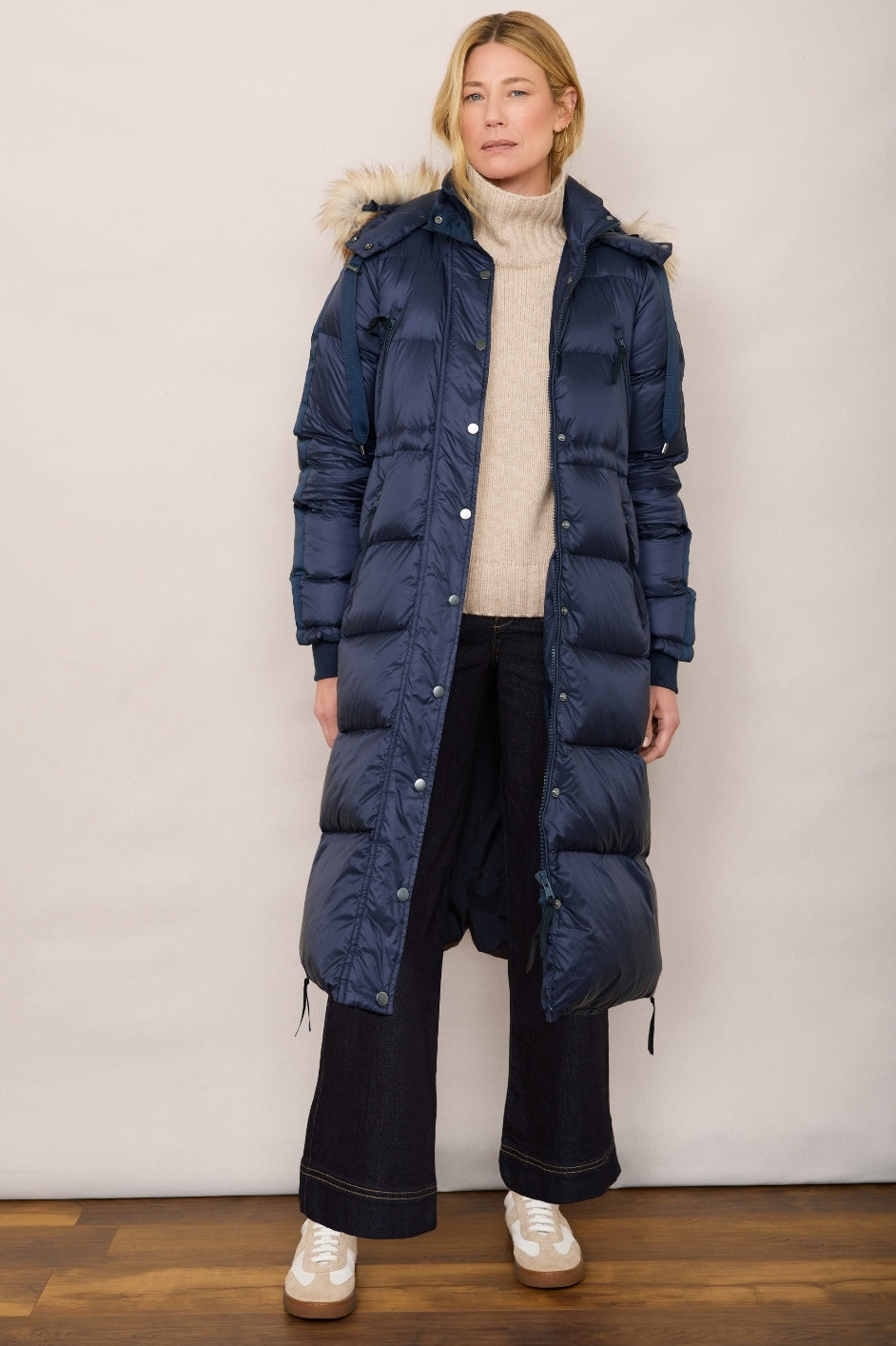 - Long length puffer coat, warmth top to bottom.