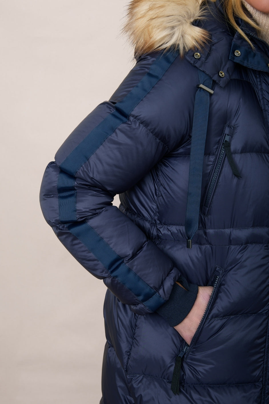 - Pockets lined with cosy faux fur and zipped chest pockets.